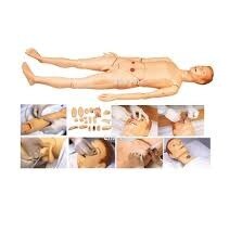 The Advanced Nursing & Wound Care Manikin (Male) is a life-sized, full-body simulation model designed specifically for comprehensive nursing and wound care training. This manikin enables realistic practice of a wide range of clinical procedures, wound management, and holistic care in professional and educational settings.​ Key Features Full-body, anatomically realistic male manikin suitable for basic to advanced nursing procedures.​ Enables hair, face, eye, and ear washing, mouth care, and artificial teeth maintenance.​ Supports airway management including endotracheal intubation, tracheotomy care, and suctioning.​ Allows oral/nasal feeding, gastrolavage, and simulated care for main thoracic and abdominal cavity organs.​ Permits venipuncture, injection, blood transfusion (arm), subcutaneous and intramuscular injections at multiple sites, catheterizations (male and female), bladder irrigation, and enema administration.​ Specialized for wound care: features trauma wound modules (pressure ulcers, sutured wounds, lacerations, ulcers, amputation sites) for practicing cleaning, disinfection, dressing, hemostasis, and bandaging.​ Educational Applications Perfect for skill-building in trauma assessment, wound evaluation, wound dressing, and holistic patient care.​ Used in nursing schools and medical institutions for hands-on simulation of both routine and emergency scenarios, enhancing proficiency and confidence.​ Flexible limbs and life-like skin allow learners to practice moving, positioning, dressing, and real clinical procedures.