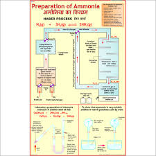 The “Ammonia & Manufacture of Ammonia” (55x90 cm) educational chart presents both the fundamental properties and laboratory preparation of ammonia as well as the industrial (Haber-Bosch process) synthesis, making it ideal for secondary and college chemistry classrooms.​ Chart Features Printed in full color and laminated in 55x90 cm format for clear classroom visibility and long-term use.​ Ammonia Properties Section: Illustrates the ammonia molecule (NH₃), showing its trigonal pyramidal geometry and polar nature.​ Notes ammonia’s colorless, pungent odor, high water solubility, and basic character.​ Lists uses such as fertilizers, nitric acid production, refrigeration, explosives, and cleaning agents.​ Laboratory Preparation: Depicts the reaction between ammonium chloride and slaked lime (calcium hydroxide), heated to liberate ammonia gas: 2 N H 4 C l + C a ( O H ) 2 → 2 N H 3 + C a C l 2 + 2 H 2 O 2NH 4 Cl+Ca(OH) 2 →2NH 3 +CaCl 2 +2H 2 O Showcases typical lab apparatus and safety practices for collecting ammonia.​ Industrial Manufacture – Haber Process: Diagrams the Haber (Haber–Bosch) process, the main industrial route for ammonia synthesis.​ Outlines the flow of raw materials: nitrogen (from air), hydrogen (from natural gas/steam reforming), fed into a high-pressure reactor over an iron catalyst.​ Specifies key conditions: 400–450°C, 150–200 atmospheres, iron catalyst.​ Shows recycling of unreacted gases to maximize efficiency and ammonia yield, and subsequent cooling for ammonia separation.​ Contains a block diagram or flow chart describing gas preparation, purification, catalytic reaction, product condensation, and recycling steps.​ Educational Value Provides a clear stepwise visual summary of laboratory and industrial ammonia production, reaction equations, catalyst roles, and typical process layout.​ Helps students connect the theoretical chemistry of ammonia to real-world industrial processes and everyday products.​ Widely used for both class demonstration and independent revision in educational settings. This chart is essential for reinforcing understanding of chemical reactions, catalysis, equilibrium, and the practical significance of ammonia chemistry.