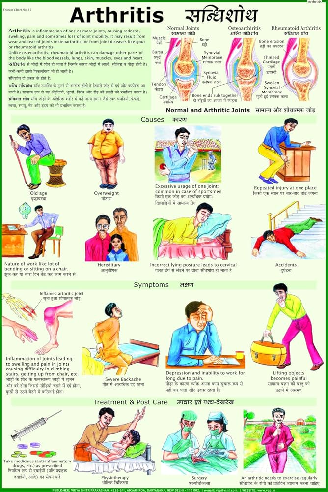The label “Arthritis (50x70cm)” corresponds to an educational chart or poster that typically illustrates the causes, types, symptoms, and management strategies for arthritis, designed for classroom or laboratory display at 50×70 cm size. Poster Content Overview Title: Arthritis Size: 50×70 cm (standard display size for education) Typical Visuals and Descriptions: Anatomical diagrams of affected joints (e.g., hands, knees) Comparison of healthy vs. arthritic joints (cartilage loss, inflammation) Key symptoms: joint pain, swelling, stiffness, decreased range of motion Main types: Osteoarthritis, Rheumatoid arthritis, Gout, Juvenile arthritis Risk factors and demographics (age, genetics, lifestyle) Preventive measures (proper exercise, maintaining healthy weight) Basic treatment methods: medication, physiotherapy, surgery options Educational Use Suitable for biology, health education, and medical science classes to explain chronic joint conditions and their impact on daily living.​ Designed with clear illustrations and concise explanations for easy classroom reference.​ For a custom printable chart, optimal design includes: Visual clarity, labeled anatomical illustrations, and symptom highlights Key facts for quick understanding without overcrowding If you need a detailed content plan or a specific file format for printing, please specify further requirements so a full schematic design can be recommended.