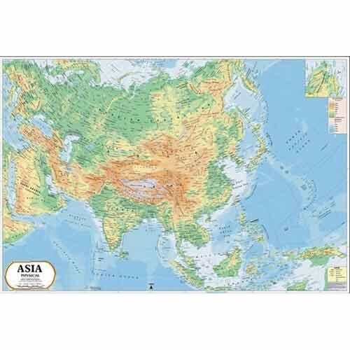 The “Asia Physical Map (100x70cm)” is a large-format educational map showcasing the physical geography, landforms, and natural features across Asia, ideal for classroom or laboratory wall display at 100×70 cm. Map Content Overview Title: Asia Physical Map Size: 100×70 cm (provides detailed coverage for classrooms) Key Map Features: Relief shading or color gradation for mountains (Himalayas, Altai, Pamirs, Tien Shan, Caucasus), plateaus (Tibet), plains, valleys, and basins Major rivers (Yangtze, Ganges, Indus, Mekong, Amur, Lena, Ob) and lakes (Lake Baikal, Caspian Sea, Lake Balkhash) Key deserts and regions: Gobi, Taklamakan, Thar, Arabian, Siberian tundra and taiga Labeling of peninsulas, islands, and other notable physical regions: Arabian Peninsula, Indian Peninsula, Kamchatka, Malay Archipelago Biome overlays (rainforest, steppe, savanna, coastal wetlands, tundra) Surrounding oceans and seas (Pacific, Indian, Arctic, South China Sea, East China Sea, Arabian Sea) Educational Use Utilized in geography, earth science, and environmental studies to teach about Asia’s topography, major ecosystems, and global geography.​ Designed for legibility, with high-contrast relief shading, clearly labeled features, and a legend for physical symbols.​ For printing: High-resolution vector or raster sources recommended for clarity at a large scale Include legend, scale, and orientation marker (compass rose) for classroom effectiveness Further customization (e.g., focus on specific regions or climate overlays) can be provided for tailored teaching needs.