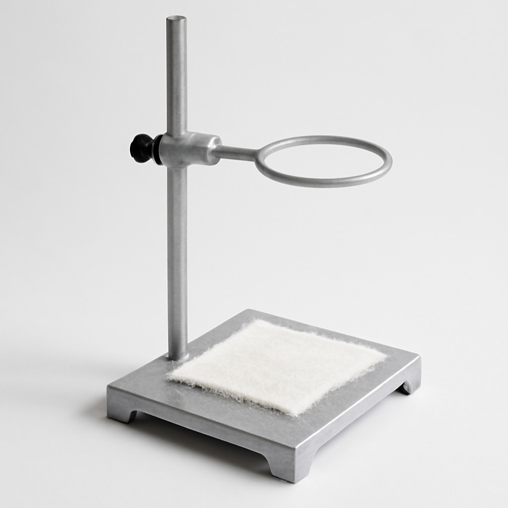 The Bar and Gauze Apparatus made of aluminium is a common laboratory tool used primarily in heating experiments in chemistry. It consists of a sturdy aluminium bar that supports a wire gauze mesh, which in turn supports beakers or other vessels during heating with a Bunsen burner or spirit lamp. Key features: Constructed from lightweight yet durable aluminium for corrosion resistance and longevity. Wire gauze provides a stable, heat-resistant platform to evenly distribute flame heat. Commonly used to support glassware during heating to prevent direct exposure to flame. Essential for safe and efficient heating in laboratory experiments. The apparatus is versatile for heating liquids, solids, or reactions in beakers and flasks. This aluminium bar and gauze combination is a fundamental piece of lab equipment, promoting safety and even heating during practical chemical experiments.