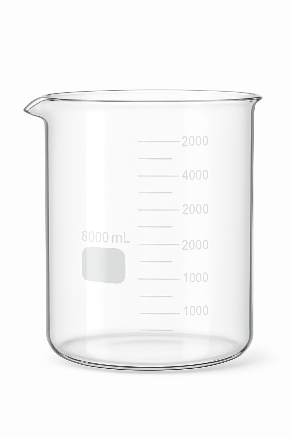 A Beaker (Low Form) 5 liters is a large laboratory glassware item made from high-quality borosilicate glass, prized for its superior resistance to heat and chemical corrosion. Its low form design means the beaker has a short, wide cylindrical body with a broad, stable base that minimizes tipping risks and allows for easy handling of large liquid volumes. The beaker also includes a well-defined pouring spout for controlled and precise liquid transfer. Key features: Capacity: 5 liters (5000 ml) Material: Heat-resistant and chemically durable borosilicate glass Design: Low form with wide base and integrated spout for safety and convenience Graduations: Clear white printed markings for approximate volume measurement Compliance: Meets laboratory glassware standards such as DIN 12331 and ISO 3819 Applications: Suitable for mixing, heating, chemical reactions, and sample preparation in research, education, and industrial laboratories Additional: Autoclavable for sterilization, ensuring safe reuse and longevity in lab environments This beaker is ideal for scientific and industrial applications requiring accurate and safe handling of large liquid volumes.