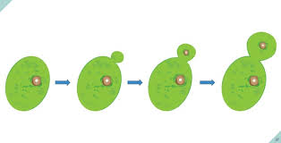 Budding in yeast is a type of asexual reproduction where a new daughter cell forms as a small outgrowth (bud) on the parent cell’s surface. This process allows yeast to rapidly multiply and form colonies, especially when nutrients are abundant.​ Steps of Budding in Yeast Bud Formation: The parent yeast cell develops a tiny protuberance or bulge, called a bud, on its surface.​ Nuclear Division: The nucleus of the parent cell divides by mitosis. One daughter nucleus migrates into the developing bud, while the other remains in the parent cell.​ Bud Growth: The bud enlarges by accumulating cytoplasm and organelles from the parent cell. The parent and bud remain attached while the bud matures.​ Separation: When the bud has fully matured, it may either detach from the parent and become a new, independent yeast cell or remain attached, sometimes forming chains or clusters of budding cells.​ Features and Importance Budding is an unequal division: the daughter cell (bud) is initially smaller than the parent.​​ It enables rapid yeast colony formation, particularly important in baking, brewing, and biotechnology.​ Some yeast cells can undergo several budding cycles before separating, leading to branched or unbranched chains of cells.
