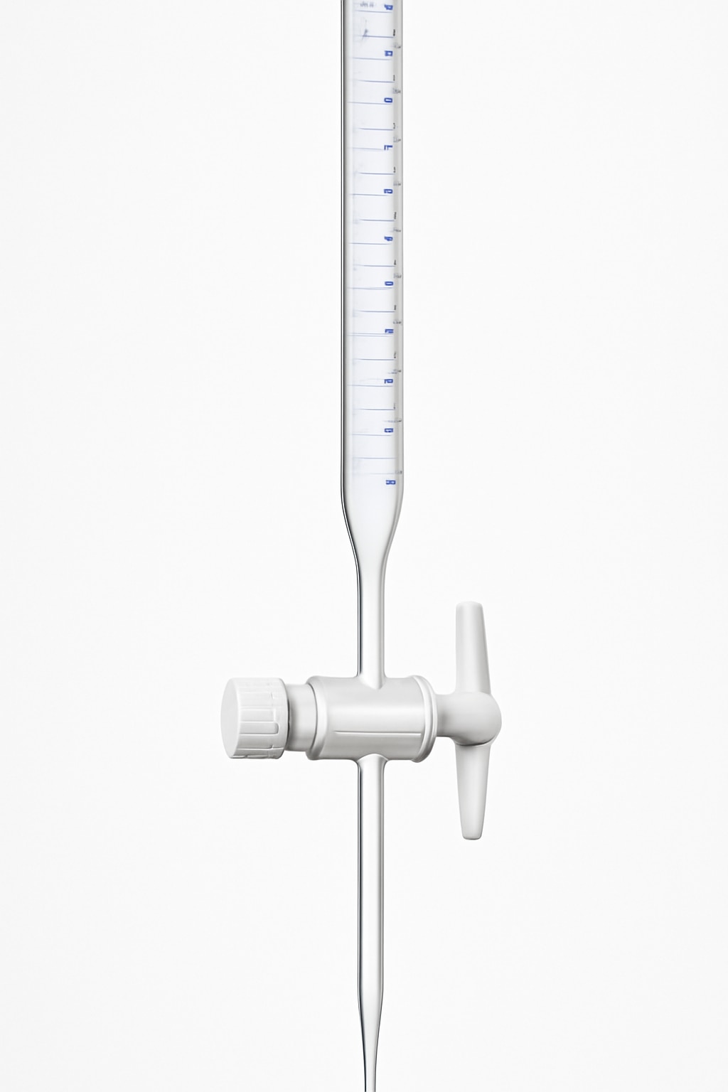 A burette white color with rotaflow stopcock 25 ml is a laboratory instrument used for precise dispensing and measurement of liquid volumes, commonly in titrations. The white color provides clear visibility for reading measurements, while the rotaflow stopcock allows for smooth and controlled flow of liquids, minimizing leaks and ensuring accurate delivery. This burette features graduation markings up to 25 milliliters for exact readings, making it ideal for analytical chemistry and other laboratory procedures requiring precise liquid control.