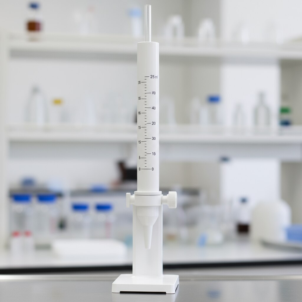 The 25 ml white burette with a PTFE stopcock is a high-precision laboratory apparatus designed for accurate measurement and controlled dispensing of liquids. The white color provides a clean and clear view of the liquid inside, while the PTFE (polytetrafluoroethylene) stopcock ensures smooth, chemical-resistant flow regulation that is durable and easy to operate. This burette is ideal for titrations and other volumetric analysis, featuring clear volume graduations for precise measurement.