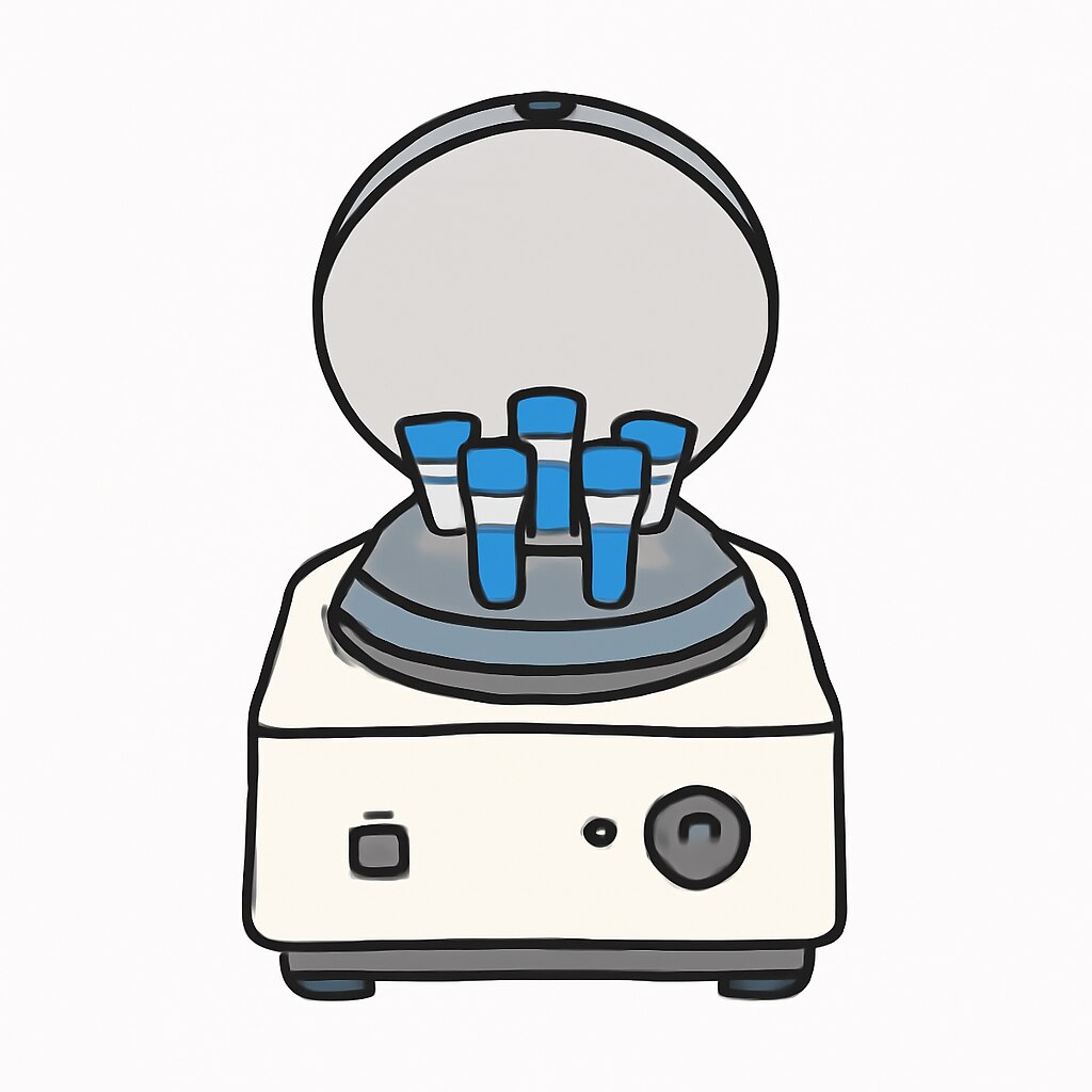 The image depicts laboratory centrifuge machines alongside typical plasticware used in such settings. The plasticware includes centrifuge tubes and sample holders, which are essential for containing and balancing samples during centrifugation. The centrifuge machines are shown in a clean, organized laboratory environment, highlighting their design for safely spinning samples at high speeds to separate components based on density. This setup is common in biological, chemical, and clinical laboratories for sample preparation and analysis (see the generated image above).