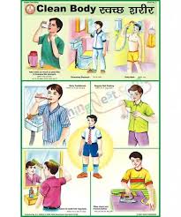 The “Cleanliness” (50x70 cm) educational chart promotes personal, classroom, and community hygiene through attractive visual reminders tailored for young children and school settings.​ Chart Features Size: 50x70 cm, multicolor, double-laminated for durability and available in English/Hindi or regional languages.​ Clearly illustrates key cleanliness habits and actions: Washing hands regularly (before meals, after restroom) Brushing teeth twice daily, daily bathing, trimming nails.​ Throwing waste in dustbins, keeping classrooms/desks tidy Cleaning up after play or meals at home and school.​ Wearing clean clothes and shoes Keeping the school and surroundings litter-free, picking up trash.​ Reporting unclean areas to teachers or parents.​ Visuals may show both personal hygiene practices and group or class efforts for a clean environment (school, park, neighborhood).​ Educational Value Reinforces that cleanliness prevents illness and supports happiness, focus, and a sense of pride in students and schools.​ Promotes shared responsibility, self-discipline, and developing positive habits from a young age.​ Supports school cleanliness campaigns, group projects, and health classes as part of value and life skills education.​ This chart is a practical and motivating tool for instilling regular cleanliness habits and community stewardship in children and young students.​