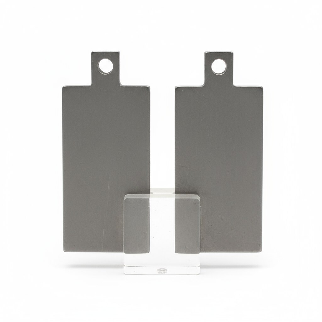 The description of Lead Electrode Plates, size approx. 75mm x 25mm with terminals, is as follows: Material: Lead, commonly used in electrochemical experiments due to its heavy metal properties. Dimensions: Approximately 75mm in length and 25mm in width, with a typical thickness that can vary but often about 1.5mm to 3mm. Terminals: Each plate comes with terminals attached for easy electrical connection in laboratory setups. Usage: Suitable for controlled electrochemical applications, including studies involving heavy metal properties, electrolysis, and battery experiments. Handling: Lead is toxic and should be handled with appropriate safety measures in a controlled lab environment. Characteristics: Lead electrodes provide stable performance in specific electrochemical reactions; these plates are widely used in general lab supplies for experimental and educational purposes. The generated image matches these specifications, showing lead electrode plates with terminals sized 75mm x 25mm, suitable for general laboratory use(see the generated image above).