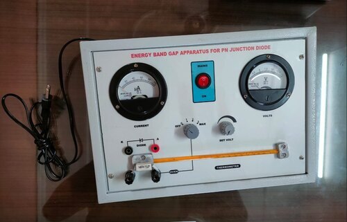 The “Energy Band Gap of PN Junction Diode” refers to the minimum energy required to move an electron from the valence band to the conduction band in a semiconductor material used for making diodes, typically measured using a reverse bias experiment on the diode. Principle and Theory The energy band gap (E g g ) is the energy difference between the top of the valence band and the bottom of the conduction band in a semiconductor. For a PN junction diode, this gap correlates with the minimum energy an electron needs to enable conduction. When a diode is reverse biased, the minority carrier concentration determines the reverse saturation current, which strongly depends on temperature due to its relationship with the band gap energy. Experimental Description Apparatus: Includes a PN junction diode (silicon or germanium), a microammeter, a voltmeter, a thermometer, and an electric oven to vary junction temperature. Procedure: The diode is reverse biased and placed in a temperature-controlled oven. As the temperature is changed, the reverse saturation current I s I s is measured at different temperatures. Data Analysis: A graph is plotted of log ⁡ 10 ( I s ) log 10 (I s ) vs. 10 3 / T 10 3 /T (where T T is the temperature in Kelvin). The straight line's slope is used to calculate the energy band gap using: E g = slope 5.036 E g = 5.036 slope (value in electron volts for silicon is usually around 1.1 eV and for germanium about 0.7 eV). Applications Accurate determination of the energy band gap informs about the electrical and optical properties of semiconductor devices, influencing their performance in electronics and optoelectronics. This experiment provides insight into semiconductor theory, band structure, and the physical limits of conduction in diode materials.