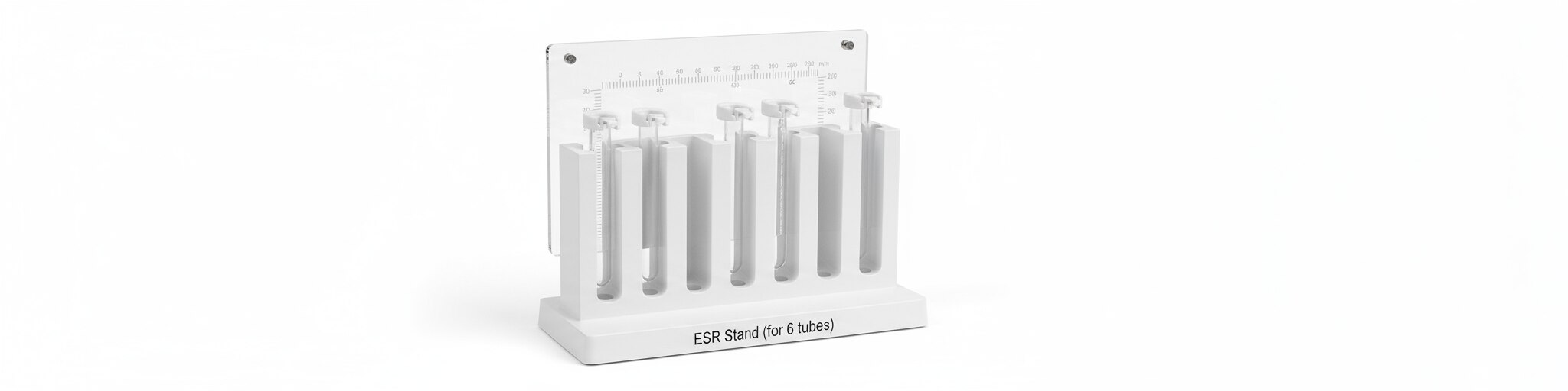 Description of ESR Stand (for 6 tubes): A laboratory rack designed to hold 6 erythrocyte sedimentation rate (ESR) tubes upright during sedimentation tests. Usually made from materials such as iron or plastic, sometimes coated or painted for durability and cleanliness. The stand features 6 slots or holes to secure tubes firmly and prevent tipping or falling during the testing process. Used primarily in hematology and pathology labs to facilitate the ESR blood test. Compact and portable, suitable for small-scale lab setups or where fewer samples are tested. Often white or neutral-colored for easy identification of tube contents and cleanliness. This stand helps maintain tube stability, ensuring accurate and consistent sedimentation rate measurements. The image generated visually shows a standard ESR stand designed to hold six tubes securely in a laboratory environment(see the generated image above).