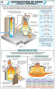 The educational chart “Extraction of Iron (Blast Furnace)” (55×90 cm) visually explains the industrial extraction of iron from its ore using the blast furnace process, making it ideal for classroom or lab use.​ Core Chart Features and Content Size and Format: 55×90 cm, typically in a multicolor, laminated format designed for repeated educational use.​ Main Diagram: Large cross-sectional schematic of a blast furnace, with labeled zones and components like the input hopper, tuyeres (air blast inlets), area for molten iron (“hot metal”), and slag tap.​ Key Input Materials: Shows how the three main raw materials—iron ore (often hematite, Fe₂O₃), coke (carbon), and limestone (CaCO₃)—are added at the top.​ Major Reactions: Combustion: Coke burns in the hot air, creating carbon dioxide: C + O 2 → CO 2 C+O 2 →CO 2 Reduction to Carbon Monoxide: At higher temperatures, more coke turns CO₂ to CO: CO 2 + C → 2 CO CO 2 +C→2CO Reduction of Iron Oxide: Fe 2 O 3 + 3 CO → 2 Fe + 3 CO 2 Fe 2 O 3 +3CO→2Fe+3CO 2 Limestone Decomposition (removal of impurities): CaCO 3 → CaO + CO 2 CaCO 3 →CaO+CO 2 CaO + SiO 2 → CaSiO 3 CaO+SiO 2 →CaSiO 3 (slag formation) Process Flow: The iron melts and settles at the bottom; slag floats above and is removed separately.​ Educational Points: The chart usually highlights: The role of coke as both fuel and reducing agent​ The function of limestone as a flux for removal of silica impurities​ The tapping points for both molten iron and slag​ Environmental considerations and by-products (e.g., slag reuse).​ Audience and Usage Aimed at secondary and undergraduate-level chemistry and metallurgy topics.​ Helps students visualize the stepwise extraction and purification of iron.​ This chart serves as a comprehensive, visually organized teaching aid for understanding the blast furnace process in industrial iron extraction.