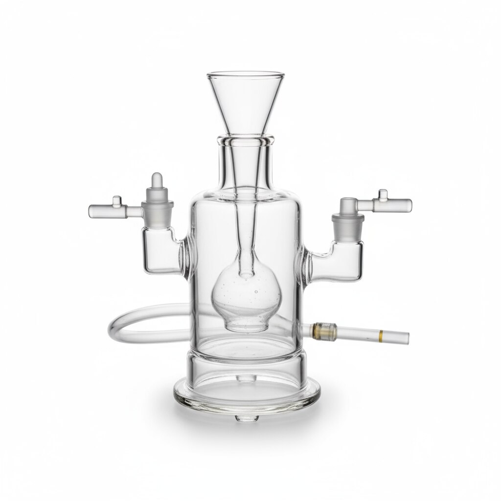 Description of Glass Filter Pump: A glass filter pump is a laboratory filtration apparatus used for vacuum or pressure-driven filtration of liquids and solutions. Typically made from borosilicate glass for chemical resistance, durability, and visibility during filtration. The design includes a glass funnel/filter holder assembly connected to a vacuum flask or reservoir, with vacuum hose connections. The pump mechanism creates reduced pressure to pull liquid through a filter membrane, separating solids from liquids efficiently. Commonly used for sterilization, clarification, particulate removal, microbiological tests, and sample preparation. Features often include a fritted glass filter base, adjustable vacuum control, and precise vacuum gauges. Glass filter pumps are resistant to most solvents and chemicals and can be sterilized by autoclaving, flaming, or dry heat. The apparatus supports filter membranes of standard diameters (e.g., 47mm), suitable for various pore sizes depending on filtration requirements. The generated image shows a glass filter pump for laboratory filtration with visible glass components suitable for precise vacuum filtration operations(see the generated image above).