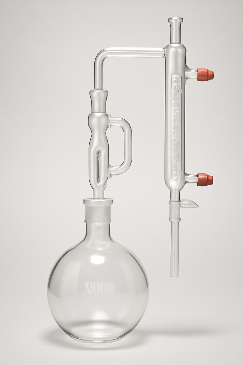 The Clevenger Apparatus with a 1000 ml flask capacity and a 350 mm condenser is a robust laboratory distillation setup ideal for extraction of essential oils and volatile substances from various biological or chemical samples. The 1000 ml flask provides ample capacity for larger-scale distillations, facilitating more substantial sample processing while maintaining efficiency. The 350 mm condenser length improves vapor condensation and cooling efficiency, enhancing the distillation process and enabling effective separation of essential oils. Equipped with a graduated collection tube, the apparatus allows for precise collection and measurement of the extracted oils. This design balances capacity and performance, making it suitable for both research and industrial applications requiring accurate and efficient essential oil extraction.