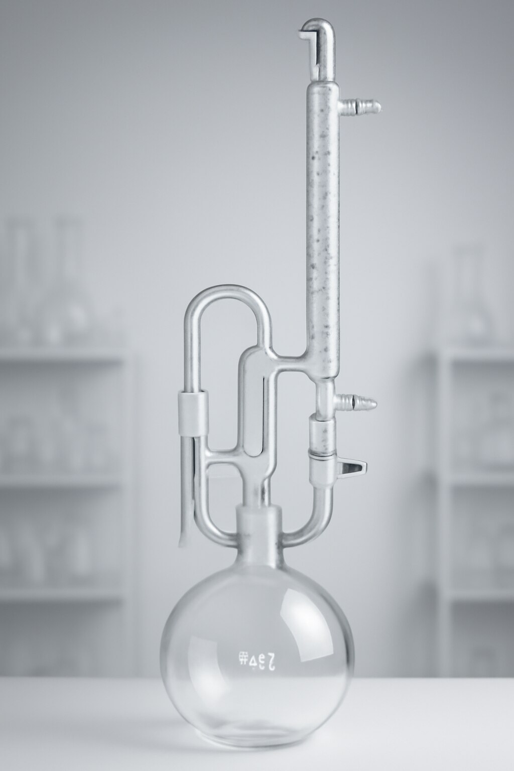 The Clevenger Apparatus with a 5000 ml flask capacity and a 600 mm condenser is a large-scale distillation system designed for high-volume extraction of essential oils and volatile compounds. The 5000 ml flask capacity supports processing of extensive sample volumes, ideal for industrial applications or bulk research extractions. The 600 mm condenser length enhances the condensation efficiency, ensuring effective cooling and separation of vapors during distillation. Equipped with a graduated collection tube, this apparatus facilitates precise measurement and collection of the essential oil and aqueous layers. Its robust design accommodates large-scale operations while maintaining accuracy and efficiency in extraction processes.