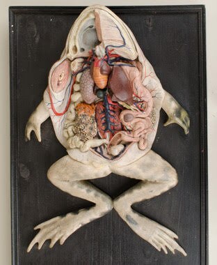 Frog dissection is a laboratory technique and educational exercise that allows students to study both the external and internal anatomy of frogs, providing practical insights into vertebrate structure and organ systems. Specimens may be real, preserved frogs or detailed anatomical models designed for repeated use.​ External Anatomy Students examine the body orientation (dorsal and ventral sides), identifying key external features such as the head, eyes, nictitating membrane (third eyelid), tympanic membranes (eardrums), forelimbs, hindlimbs, and cloacal opening.​ Observers may distinguish between male and female frogs by features such as thumb pads or visible eggs in females.​ Dissection Procedure The frog is placed ventral side up (belly up), and limbs are pinned out for stability. A shallow incision is made through the abdominal skin from the cloaca to the jaw, followed by lateral cuts to create flaps for viewing. The procedure is repeated to open the muscle wall, exposing internal organs.​ Tissue flaps are pinned back to display the organ systems. Internal Anatomy Major organs exposed include the liver (large and multi-lobed), gallbladder, heart (three-chambered), lungs, stomach, intestines, kidneys, fat bodies, and (in females) eggs or ovaries.​ Additional details for educational models may include removable, color-coded components to illustrate digestive, respiratory, circulatory, and reproductive systems.​ Educational Purpose Frog dissection familiarizes students with vertebrate organ positions and functions, helping to teach comparative anatomy.​ Synthetic and virtual models are increasingly used for ethical and environmental reasons, but preserved specimens remain common in many curricula.​ Frog dissection models and exercises offer hands-on learning experiences, clarifying concepts in biological structure and function.​