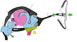 The frog ear consists of two main parts: the tympanic membrane (eardrum) and the internal ear (middle and inner ear), functioning for both hearing and balance. Frogs do not have external ear structures; instead, the tympanic membrane is a visible, circular disc located just behind each eye on either side of the head.​ Structure and Features Tympanic Membrane: A large, round, thin, external eardrum that vibrates in response to sound waves from the environment. It transmits these vibrations through a single middle ear bone (columella) into the inner ear.​ Middle Ear: Air-filled cavity containing the columella (analogous to the stapes in mammals), connecting the tympanic membrane to the inner ear, amplifying and transmitting sound.​ Inner Ear: Contains two sensory regions—the amphibian papilla (low/mid frequencies) and the basilar papilla (high frequencies)—responsible for sound detection and frequency discrimination. The inner ear also has semicircular canals, which are essential for maintaining balance and spatial orientation.​ Functions Hearing: The ear detects sound vibrations in air and water. The process consists of the tympanic membrane receiving sound, the middle ear amplifying it, and the inner ear converting it into electrical signals for interpretation by the frog’s brain.​ Balance: The semicircular canals of the inner ear help the frog maintain equilibrium in both terrestrial and aquatic environments.​ Adaptations Frog ears are tuned to specific frequencies, especially those used in communication between frogs and detection of predators. They utilize their skin, lungs, and mouth cavity to further sense environmental vibrations, enhancing their ability to localize sounds.​ The eardrum is exposed rather than covered, making frogs highly sensitive to external vibrations.​ The frog ear’s simple anatomy and dual functionality make it a valuable model for studying vertebrate auditory and balance mechanisms.