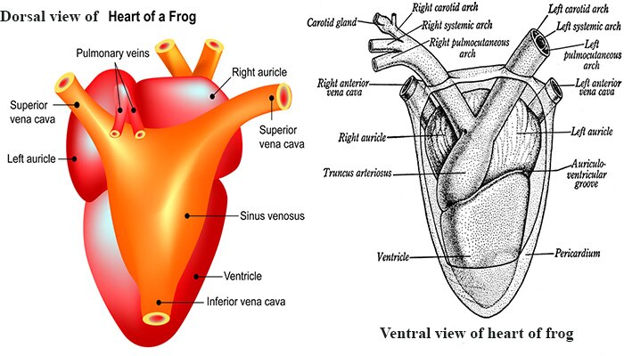 The frog heart is a three-chambered, dark red, muscular organ situated mid-ventrally in the anterior part of the body cavity, within a protective double-layered pericardium. It consists of two upper chambers (right and left atria/auricles) and a single lower chamber (ventricle).​ Structure and Features Atria (Auricles): The right atrium receives deoxygenated blood from the body via the sinus venosus, while the left atrium receives oxygenated blood from the lungs through the pulmonary veins. The atria are separated by an interatrial septum and open into the ventricle through auriculo-ventricular apertures with valves to prevent backflow.​ Ventricle: A single, thick-walled, spongy chamber that mixes both oxygenated and deoxygenated blood, then pumps it out to the body and lungs. Its internal surface is highly trabeculated, which helps minimize complete mixing of the two blood types.​ Sinus Venosus: A venous chamber at the back of the heart where venous blood collects before entering the right atrium; guarded by sinuauricular valves.​ Truncus Arteriosus: An outflow tract that arises from the ventricle, guarded by semilunar valves and divided internally by a spiral valve into cavum aorticum and cavum pulmocutaneum, leading to three pairs of aortic arches (carotid, systemic, and pulmocutaneous).​ Circulatory Function The frog’s heart pumps both oxygenated and deoxygenated blood, ensuring partial separation in the atria and partial mixing in the ventricle before distribution.​ Blood passes through the heart twice during a complete circuit (double circulation): first for oxygenation in the lungs and skin, then for distribution to the body, which is an evolutionary adaptation for amphibians.​ Key Points for Models Models usually depict color-coded chambers, the interatrial septum, valves, and main vessels for clear understanding. The unique structure of the frog heart illustrates an evolutionary transition toward the more complex four-chambered mammalian heart.​ The frog heart’s three-chambered structure is a classic example for teaching comparative anatomy, circulatory physiology, and adaptive evolution in vertebrates.