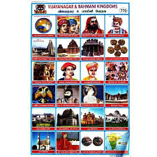 The “Kingdoms Of Bahmani & Vijaynagar (70x100)” is a large-format, laminated educational wall chart depicting the historical geography, main features, and era of rivalry between the Bahmani Sultanate and Vijayanagar Empire in medieval southern India.​ Physical Specifications Size: 70 × 100 centimeters, ideal for classroom, library, or historical displays.​ Material: Multicolour printing on 80 GSM map litho paper, thermally laminated with 30 micron polyester film for durability, and equipped with plastic rollers for hanging.​ Available Languages: English, Hindi, Kannada; certified by the Survey of India.​ Map Content & Educational Features The chart maps the territorial borders, political divisions, and key regions under the Bahmani Sultanate (1347–1527, centered in the Deccan at Gulbarga/Bidar) and the Vijayanagar Empire (1336–1646, centered at Vijayanagar/Hampi).​ Highlights major cities, capitals (Gulbarga, Bidar, Vijayanagar), trade routes, zones of conflict (especially the Raichur Doab), and riverine features (Krishna, Tungabhadra) relevant to their strategic struggles.​ Significant dynasties and rulers: Bahmani (Alauddin Bahman Shah, Firoz Shah, Ahmad Shah Wali); Vijayanagar (Harihara, Bukka, Deva Raya I/II, Krishna Deva Raya, Sadasiva Raya).​ Accompanying notes describe cultural, military, and architectural achievements: Bahmani Persian-influenced art and tombs, Vijayanagar’s temples, pavilions, and inscriptions, and notable battles such as Talikota (1565).​ The map may also indicate important neighboring powers (Yadavas, Hoysalas, Kakatiyas, and Pandyas) and conquests across Karnataka, Andhra, Maharashtra, and Tamil Nadu.​ Historical Context These kingdoms shaped South Indian politics, society, and culture from the fourteenth to sixteenth centuries, marked by cycles of rivalry and alliance.​ The Bahmani Sultanate, as the first major Muslim power in the Deccan, and Vijayanagar, as a prominent Hindu empire, contributed to the region’s architectural, economic, and artistic legacy.​ The chart provides a comprehensive, visual overview of medieval Deccan history, regional identities, and cultural cross-fertilization, supporting lessons on India’s pluralistic past.​ This educational map is perfect for illustrating the political and cultural interactions of the two great medieval South Indian powers, their rivals, territory, and contributions to subcontinental history.​