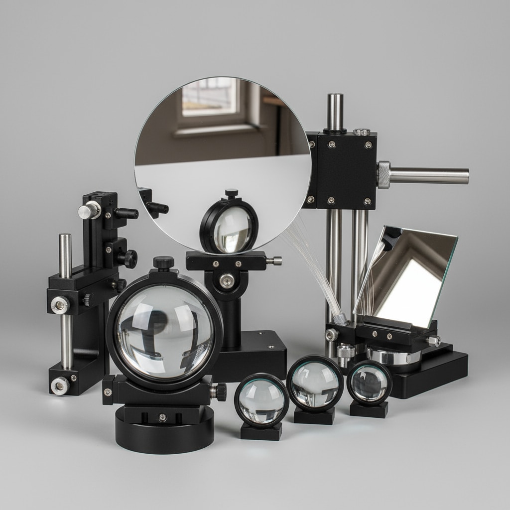 Lenses: These are curved optical glass or plastic elements that focus or disperse light beams by refraction. Common laboratory lenses include convex (converging) and concave (diverging) types used in microscopes, spectrometers, and other optical devices. They have precise curvatures and coatings to minimize distortions and maximize light transmission. Mirrors: Laboratory mirrors are flat or curved reflective surfaces made of glass with a reflective coating, often aluminum or silver. They redirect, focus, or split light beams in optical paths for experiments and instruments. Types include plane mirrors (flat surface) and concave or convex mirrors for focusing. Materials & Coatings: High-quality optical glass with anti-reflective coatings is preferred for clarity and durability. Coatings reduce glare and improve performance for specific wavelength ranges. Uses: These components are integral to various scientific applications such as microscopy, laser optics, spectroscopy, and imaging techniques, enabling precise control of light for measurement, visualization, or analysis. Laboratory lenses and mirrors are carefully manufactured to exact standards for optical clarity, mechanical stability, and chemical resistance to meet the needs of scientific research and testing.