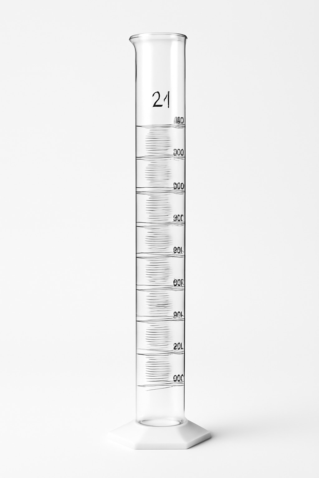 A Measuring Cylinder (White) with a hexagonal base and 2 liters capacity is a laboratory glassware item designed for accurate measurement of liquid volumes. Constructed from high-quality borosilicate glass, it offers excellent chemical resistance and durability. The white enamel graduation markings are clear and easy to read, while the hexagonal base provides stability to prevent tipping or rolling during use. Key Features Calibrated to Class B accuracy, with graduations in white enamel for high visibility. Made from borosilicate glass offering resistance to thermal shock and chemical corrosion. Hexagonal base with knobs to ensure stability on laboratory surfaces. Drip-free pouring spout for precise liquid transfer. Typically measures approximately 535-565 mm in height and 83.5 mm in diameter. Calibrated to contain volume at a reference temperature of +20°C. Suitable for professional scientific laboratories, educational institutions, and industrial applications. The measuring cylinder is widely used in labs requiring precision and safety for handling larger volumes of liquids.