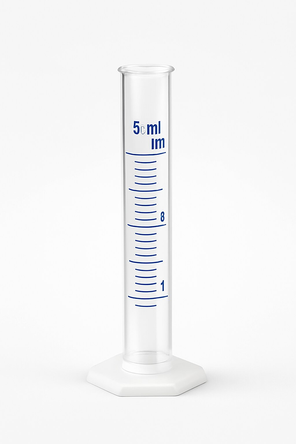 A Measuring Cylinder (White) with a hexagonal base and 5 ml capacity is a precise laboratory instrument used for measuring liquid volumes. It features a straight cylindrical body with white graduation marks for easy reading. The hexagonal base provides excellent stability, preventing the cylinder from tipping over, and makes it roll-resistant. Key Features Made from high-quality borosilicate glass for durability and chemical resistance. White graduations that are chemical resistant and easy to read. Class A calibration ensures precision in measurement. Designed with a pouring spout for easy and mess-free liquid transfer. Hexagonal base provides maximum stability and prevents rolling, making it safer for laboratory use. Typically available in small capacities starting from 5 ml, suitable for precise small volume measurements. This measuring cylinder is ideal for scientific experiments, educational labs, and any application requiring accurate liquid measurements in small volumes.