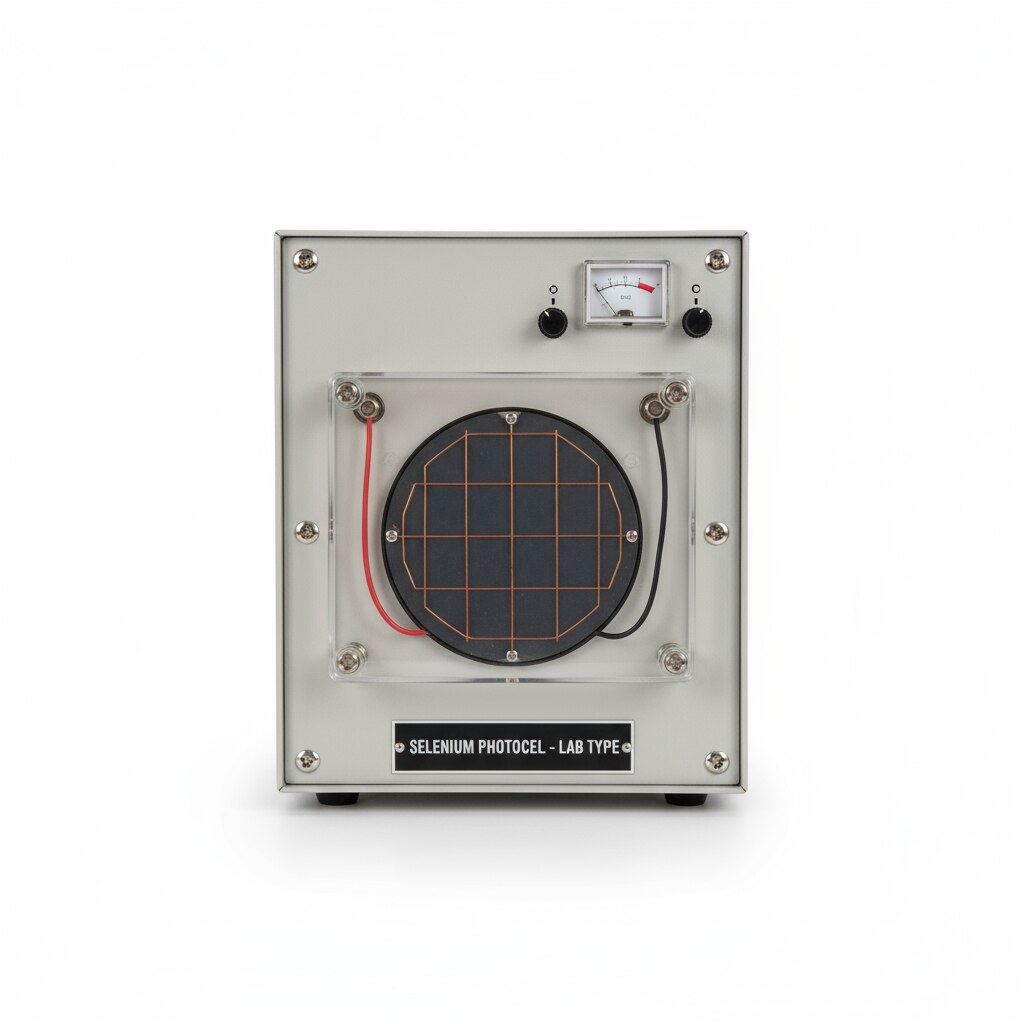 The Photo Cell Selenium type mounted in the box is a laboratory apparatus consisting of a selenium photo cell securely enclosed within a metal or plastic box. The device is designed with a transparent window or aperture that allows light to reach the selenium cell, which converts light energy into electrical energy based on the photoelectric effect. Key Features Construction: Selenium photo cell mounted on a metal base inside a protective enclosure, with electrical connections brought out at terminals for easy interfacing. Accessories: Often supplied with a lamp holder for a 60-watt bulb to provide a controlled light source for experiments. Measurement: The apparatus typically includes analog or digital meters for measuring current and voltage output from the photo cell, useful for studying the photoelectric effect and light intensity. Dimensions: The box is compact, typically around 300 mm x 175 mm x 75 mm, making it suitable for laboratory benches. Applications: Used to demonstrate and verify principles like the inverse square law of light intensity, photocurrent generation, and characteristics of photo cells in physics laboratories. Usage Ideal for educational demonstrations in physics and electronics teaching labs. Helps visualize and understand the relationship between light intensity and electrical output. Enables practical study of selenium photo cells and their behavior under varying light conditions. This selenium photo cell mounted in a box provides a safe, convenient, and effective way to explore photoelectric phenomena in laboratory settings, facilitating accurate measurement and reproducible experimentation.