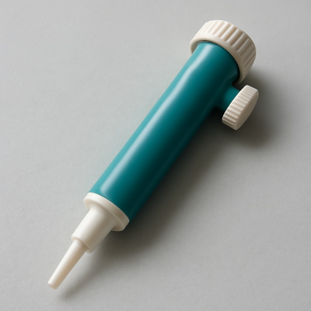A PIPETTE PUMP is a laboratory device, usually cylindrical and made of plastic, equipped with a rotary thumb wheel and a nozzle for attaching pipettes. It is used to safely and precisely draw liquids into or expel liquids from pipettes by controlling the vacuum or pressure(see the generated image above).