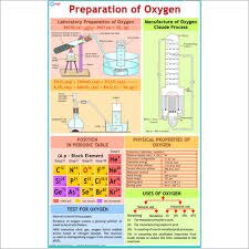 The “Preparation of Oxygen & Liquification of Air” (55x90 cm) educational chart visually explains both the laboratory and industrial methods for producing oxygen gas, with special focus on the fractional distillation of liquefied air, making it an essential teaching aid for chemistry classrooms.​ Chart Features Laminated, multicolor chart in 55x90 cm size, designed for clear visibility and durability in science classrooms.​ Illustrates two core processes: Preparation of Oxygen Laboratory Preparation: Typically shows the decomposition of hydrogen peroxide ( H 2 O 2 H 2 O 2 ) with manganese dioxide (MnO₂) as a catalyst, or heating potassium chlorate ( K C l O 3 KClO 3 ) with MnO₂. The generated oxygen is collected over water.​ Example equation: 2 H 2 O 2 ( a q ) → M n O 2 2 H 2 O ( l ) + O 2 ( g ) 2H 2 O 2 (aq) MnO 2 2H 2 O(l)+O 2 (g) Industrial Preparation: Depicts electrolysis of water and, more commonly, air liquefaction and fractional distillation.​ Liquification of Air & Fractional Distillation Liquification: Air is filtered/compressed, cooled to about − 200 ∘ C −200 ∘ C, and condensed into liquid form. CO₂ and water are removed prior to this step.​ Fractional Distillation: Shows the separation of liquid air in a fractionating column: Nitrogen ( − 196 ∘ C −196 ∘ C) boils off first, followed by argon, with oxygen ( − 183 ∘ C −183 ∘ C) remaining as a liquid at the bottom and collected.​ Emphasizes the progressive separation of gases based on boiling points. Educational Value Uses clear diagrams to outline apparatus, process flow, and key temperatures involved in both laboratory and industrial setups.​ Supports curricula in chemical processes, industrial chemistry, and states of matter, highlighting practical and real-world applications of air separation technology and gas purification.​ Provides concise, stepwise descriptions of preparation, purification, and collection steps for teaching and demonstration purposes. This poster is indispensable for teaching and revision of oxygen production and air separation techniques, reinforcing both theoretical and practical aspects of chemistry.​
