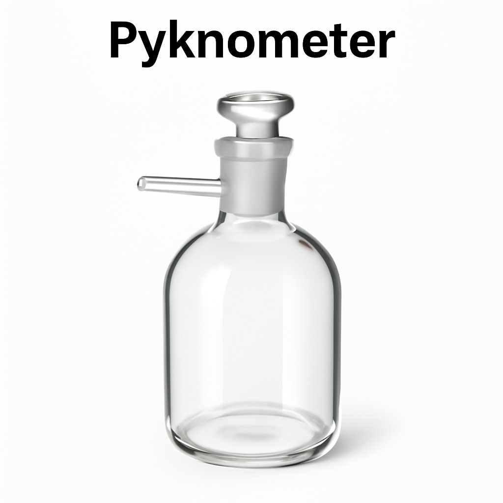 A pyknometer (also spelled pycnometer) is a precise laboratory instrument used primarily to measure the density or specific gravity of liquids, pastes, and solids. It is typically a glass flask with a close-fitting ground glass stopper that often includes a fine capillary hole to allow a fixed volume of liquid to be accurately measured. By weighing the empty pycnometer, the pycnometer filled with a reference liquid (usually water), and the pycnometer filled with the sample liquid, one can calculate the density based on weight differences and known volumes. It is widely used in chemical, pharmaceutical, food industry, environmental analysis, and materials research applications for quality control and formulation. Pycnometers offer high measurement accuracy, reliability, and simplicity of operation, making them essential for laboratory density measurements compliant with international standards like DIN EN ISO 2811-1. There are various types including liquid pycnometers and gas pycnometers, with some models featuring integrated thermometers for accurate temperature monitoring during measurement. The device is crucial in optimizing production, research, and quality control processes across industries such as paints, coatings, inks, adhesives, and pharmaceuticals.