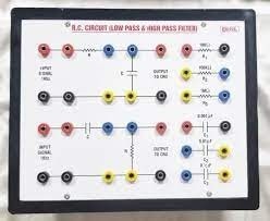 Description Circuit Design: The apparatus includes interchangeable modules or terminals for configuring RC networks as either high pass or low pass filters. In a low pass filter, the output is taken across the capacitor; it allows low-frequency signals to pass while attenuating high-frequency signals. In a high pass filter, the output is taken across the resistor; it allows high-frequency signals to pass while attenuating low-frequency signals. Measurement & Input: It features input terminals for connecting a variable-frequency AC source, as well as output measurement points for voltage or signal strength at different frequencies. Operation: By varying the frequency of the input signal and observing the output, users can plot and analyze the filter response, illustrating the cutoff frequency ( f c f c ) where the filter transitions between passing and blocking signals. Typical Formula: The cutoff frequency for RC filters is calculated as f c = 1 2 π R C f c = 2πRC 1 . This apparatus is invaluable in electronics and physics labs for hands-on experiments in signal processing, frequency selection, and filter circuit principles.The RC Circuit as High Pass & Low Pass Filters apparatus demonstrates how basic resistor-capacitor networks are used to selectively pass signals according to their frequency, serving as building blocks for electronic filter circuits. Description The apparatus consists of a configurable RC network, allowing setup as either a high pass or low pass filter. When set as a low pass filter (output across capacitor), it permits low-frequency signals to pass and attenuates higher frequencies. As a high pass filter (output across resistor), it blocks low frequencies and passes high frequencies. It includes input terminals for a variable frequency AC source and output terminals for measuring signal amplitude at different frequencies. The device allows direct observation and plotting of filter output, making it ideal for demonstrating signal conditioning and cutoff frequency ( f c = 1 2 π R C f c = 2πRC 1 ) concepts in electronics laboratories.