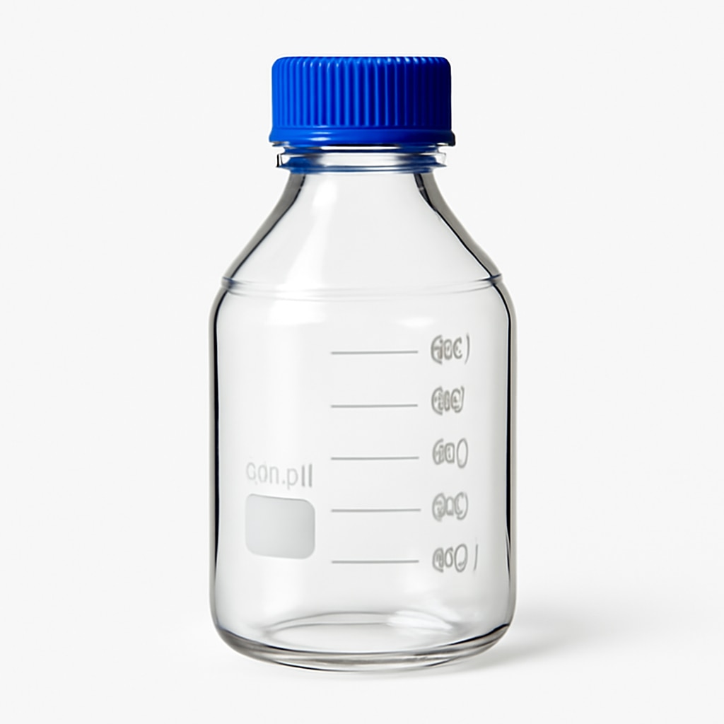The 1000 ml Reagent Bottle with screw cap is constructed from premium borosilicate glass 3.3, known for its excellent chemical resistance and thermal stability. This bottle features a narrow mouth with GL 45 threading and is paired with a high-quality polypropylene (PP) screw cap equipped with a drip-free pouring ring for precise and clean liquid transfer. Both the bottle and cap are autoclavable for sterilization at up to 121°C, ensuring suitability for laboratory sterilization protocols. The clear glass body is printed with white enamel graduations for accurate volume measurement and a large labeling area for easy sample identification. Designed to meet ISO 4796 (Part I) and IS 1388 (Part I) standards, the bottle is ideal for the safe storage, handling, and dispensing of reagents, chemicals, and solvents in pharmaceutical, industrial, and research laboratories.