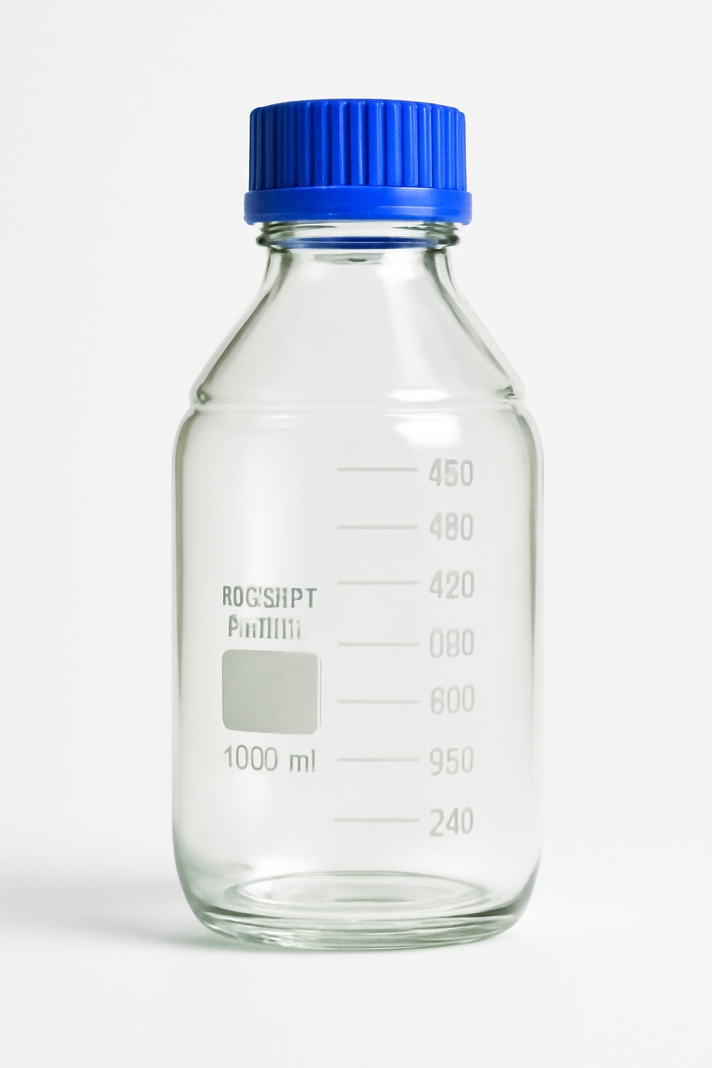 A reagent bottle (screw cap) 1000 ml is a laboratory container designed for storing chemicals, reagents, and samples. It features a screw-type cap that provides a secure and airtight seal to protect contents from contamination, evaporation, and leakage. The 1000 ml size is suitable for medium-to-large volumes commonly needed in chemical, biological, and pharmaceutical labs.