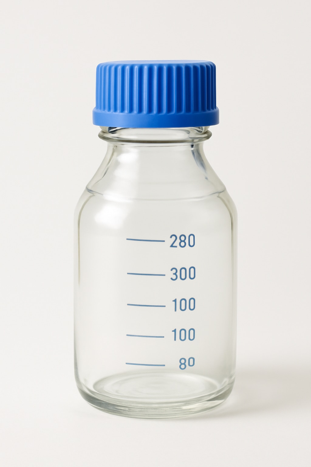 A reagent bottle (screw cap) 250 ml is a laboratory container designed for storing chemicals, reagents, or samples with a screw-type cap for a secure and airtight seal. The 250 ml capacity is suitable for moderate volumes in chemical and biological laboratories. Screw caps provide better sealing against evaporation, contamination, and leakage compared to some other stopper types, making these bottles ideal for long-term storage and handling of liquids and powders.