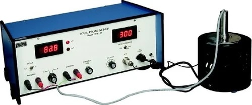 The four probe method is a widely used laboratory technique for measuring the resistivity of semiconductors at different temperatures and determining the bandgap energy of the material. Apparatus Description The setup consists of four collinear spring-loaded probes mounted with equal spacing on a Teflon bush for electrical insulation. A semiconductor sample, such as a germanium or silicon wafer, is placed on a heated platform or in an oven for temperature control. Associated electronics include a constant current generator, micro- or millivoltmeter (to measure voltage), thermometer, and oven controller for varying sample temperature. The arrangement avoids errors from probe contact resistance, making the measurement more accurate. Measurement Procedure Current is supplied through the outer two probes; the potential difference is measured across the inner two probes. At each controlled temperature, voltage and current readings allow calculation of sample resistance and, using probe geometry, conversion to resistivity. This process is repeated at multiple temperatures from room temperature up to 150–200°C. Determination of Band Gap Semiconductors exhibit exponential changes in resistivity with temperature, following: ρ ( T ) = A exp ⁡ ( E g 2 k B T ) ρ(T)=Aexp( 2k B T E g ) where E g E g is the band gap energy, k B k B the Boltzmann constant, and T T temperature. A graph is plotted of log ⁡ ( ρ ) log(ρ) versus 1 / T 1/T; the slope of this plot is proportional to the band gap energy ( E g E g ), which can then be determined. Applications This method provides precise resistivity measurements and bandgap determination, fundamental for characterizing semiconductor properties and crucial in electronics/materials science research. The four probe apparatus is standard in academic and industrial labs, offering reliable results even on small, thin samples.