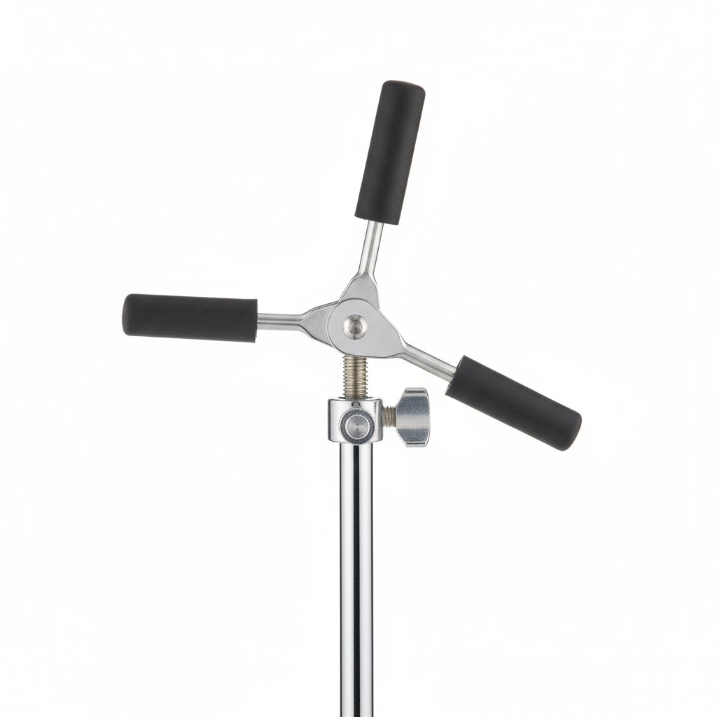 A Retort Clamp with 3 Fingers and Rubber Sleeve is a laboratory clamp used to hold larger pieces of glassware or oddly shaped objects securely during experiments. It features three fingers or prongs that provide a stable grip, with rubber sleeves on the jaws for enhanced protection and firmer hold of glassware, preventing slipping or breakage. This clamp is typically made from high-quality aluminum pressure die casting, which ensures durability, strength, and resistance to corrosion. Its design allows it to securely hold different shapes and sizes of laboratory glassware like flasks, burettes, or condensers. The clamp is ideal for use with retort stands in various scientific, educational, or research laboratories for safe, adjustable positioning of equipment during experimental procedures.Here is the generated image of a Retort Clamp, 3 Finger with rubber sleeve, presented on a white background: The Retort Clamp with 3 Fingers and Rubber Sleeve is designed for laboratory use to securely hold larger or oddly shaped glassware and apparatus. The three fingers provide a stable grip, shielded by rubber sleeves to prevent slipping and protect fragile glass from damage. Made from superior aluminum pressure die casting, it offers durability and corrosion resistance, making it ideal for lab experiments requiring firm, adjustable holding of glassware on retort stands (see the generated image above