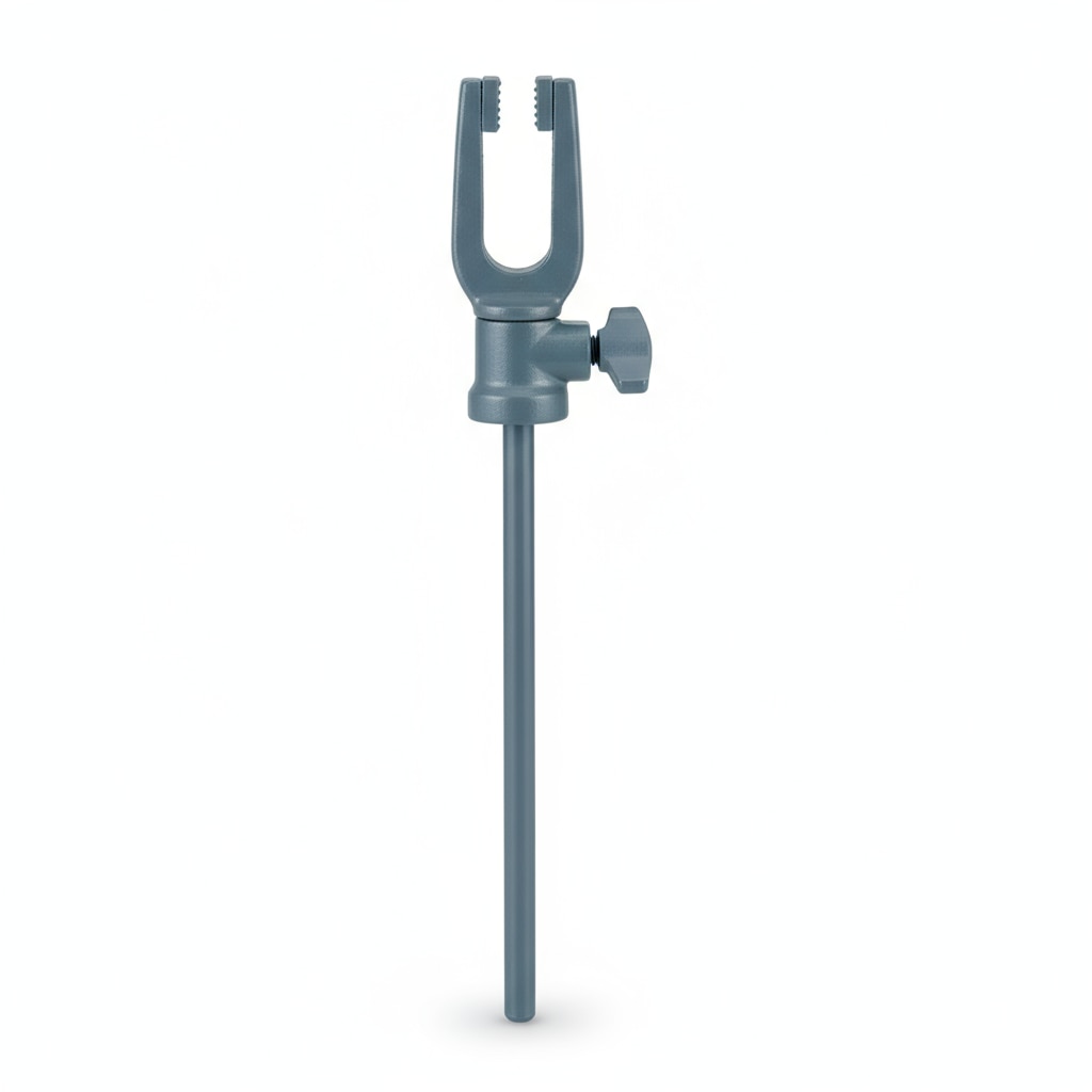The Retort Clamp, Fisher Type, Single is a laboratory clamp designed to securely hold a single burette or piece of glassware during experiments. It is typically made of mild steel sheet and includes a built-in boss head for easy attachment to a retort stand. The clamp is powder-coated to ensure durability and resistance to corrosion. Key features include: Firm-grip jaws with a smooth, non-slip lining to prevent damage to delicate labware while holding it tightly. Made from sturdy mild steel for long-lasting use. Powder-coated finish for protection against rust and wear. Suitable for securely holding single burettes or similar glassware in laboratory setups. Enables safe and adjustable positioning on retort stands, essential for precise laboratory work such as titrations.
