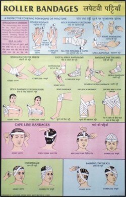 The “Roller Bandages (50x70cm)” chart is an educational poster describing the usage, types, and application techniques for roller bandages, suitable for classroom or medical training wall display at 50×70 cm. Poster Content Overview Title: Roller Bandages Size: 50×70 cm (standard for first aid and health education) Key Visuals and Descriptions: Diagrams illustrating different types (triangular, elastic, gauze, crepe) and widths of roller bandages Stepwise graphics showing proper techniques: circular turns, spiral turns, spiral reverse turns, figure-of-eight, recurrent bandages Application examples: wrist, ankle, finger, elbow, knee, head Safety tips: avoiding tightness, ensuring coverage, securing ends Indications for use: wound dressing, stabilizing joints, reducing swelling Removal and reapplication procedures with annotated visuals Educational Use Essential for first aid, nursing, and health science instruction, showing correct, safe, and practical wrapping methods.​ Poster designed for clarity, with easy-to-follow visuals and concise instructional text for classroom effectiveness.​ For printing: Use high-resolution/contrasted diagrams and clear labeling to ensure visibility and understanding at classroom scale Customizations (language overlays, institutional logo, extra technique detail) can be included upon request.