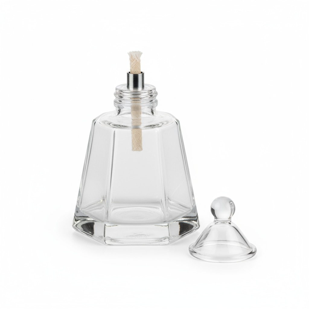 Spirit Lamps- Glass with wick and lid, Hexagonal Type