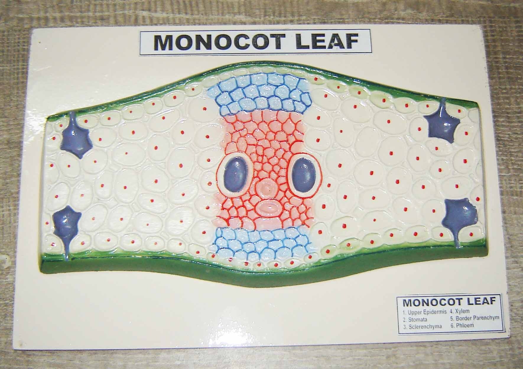 A T.S. (transverse section) of a monocot leaf—such as those of grasses or maize—shows unique anatomical features that distinguish it from a dicot leaf. Monocot leaves are also known as “isobilateral” because their internal anatomy is largely similar on both sides.​ Key Anatomical Features Upper and Lower Epidermis: Both surfaces are covered by a single layer of closely packed parenchymatous cells with a cuticle for protection. Stomata are present on both epidermal layers, and some cells in the upper epidermis—called bulliform (motor) cells—are large and thin-walled, enabling leaf rolling during water stress to reduce water loss.​ Mesophyll: The entire ground tissue between the epidermal layers is called mesophyll, which is not differentiated into palisade and spongy parenchyma (unlike dicots). Mesophyll cells are isodiametric with intercellular spaces and contain numerous chloroplasts for photosynthesis.​ Vascular Bundles: Many vascular bundles of varying sizes run parallel within the leaf. Each vascular bundle contains xylem (towards the upper epidermis) and phloem (towards the lower epidermis); all are surrounded by a parenchymatous bundle sheath. Larger vascular bundles may have extra layers or sclerenchyma for support.​ Specialized Cells: Bulliform cells (aid in leaf curling), silica cells (for rigidity), and subsidiary cells (associated with guard cells of stomata) are often present.