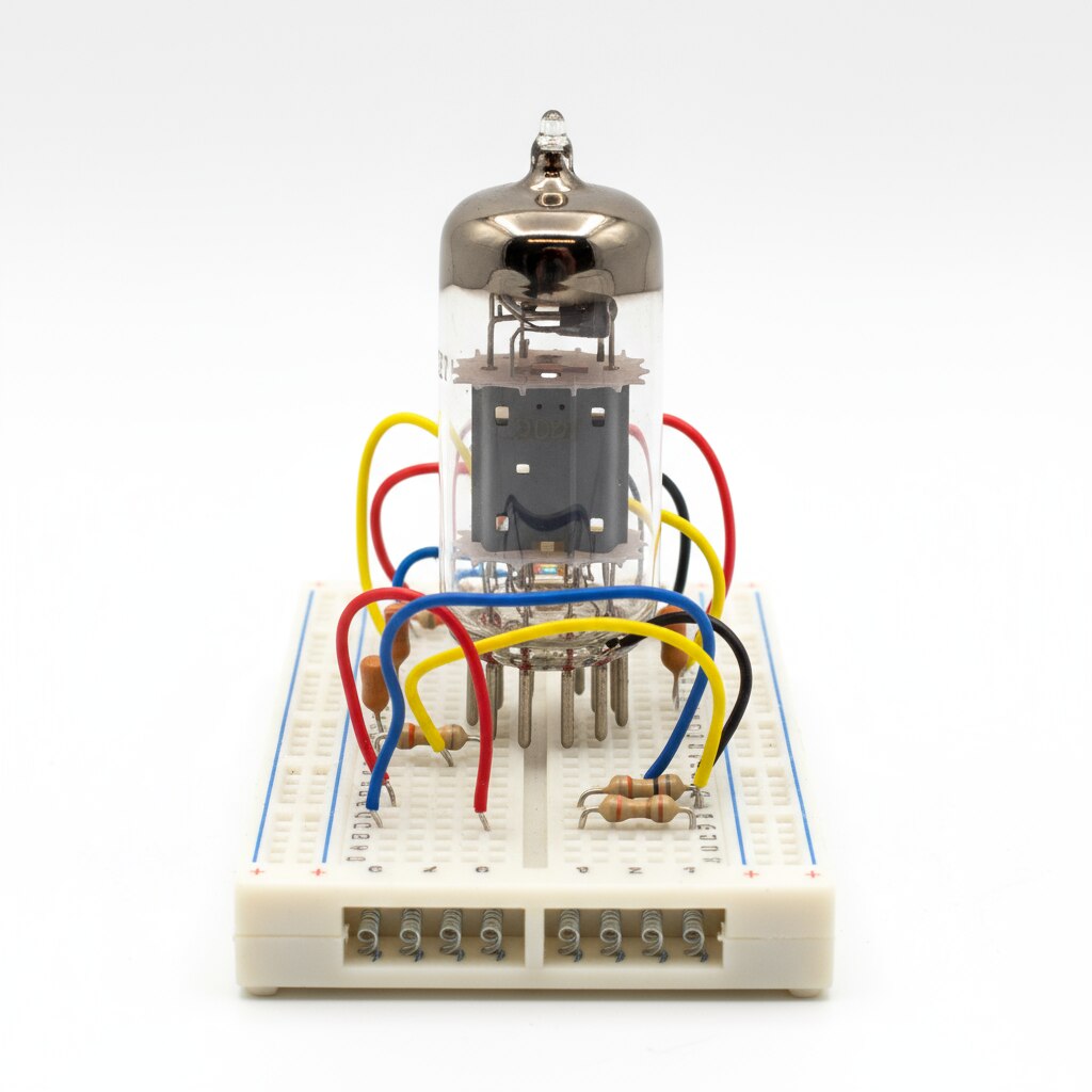 The Thyratron Valve (2D21) on Board is a miniature gas-filled tube used as a high-power electrical switch and controlled rectifier. It operates by ionizing the gas inside the envelope to create a plasma that conducts electricity between the anode and cathode, controlled by the grid voltage. Key Features Construction: Four-electrode thyratron with a gas-filled envelope, typically containing inert gases like argon or mercury vapor, housed in a compact glass or ceramic package. Heater Voltage: Operates with a heater voltage around 6.3V, responsible for heating the cathode to emit electrons. Switching Capability: Capable of switching high currents and voltages rapidly, making it suitable for radar, pulse circuits, and power control. Control Characteristics: The device remains non-conductive until the control grid voltage triggers ionization, allowing precise control over conduction. Ionization Potential: Used in experiments and practical applications to study ionization potential characteristics of gases like mercury. Recovery Time: The tube's conduction is maintained as long as an anode current flows; it turns off only when the current is interrupted for a short period, limiting frequency of operation to a few kHz. Applications: Used in switched-mode power supplies, pulse generation circuits, radar transmitters, high-voltage rectifiers, and experimental physics apparatus. Operational Principle The thyratron works as a controlled switch based on gas ionization inside the tube. It effectively replaces mechanical relays in high-voltage, high-current environments with faster and reliable switching. The control grid modulates the point at which conduction begins by influencing electron flow and gas ionization between cathode and anode. This 2D21 thyratron valve on board is an essential component in high-power electronic switching applications and experimental setups, providing fast, reliable, and controllable conduction capabilities.