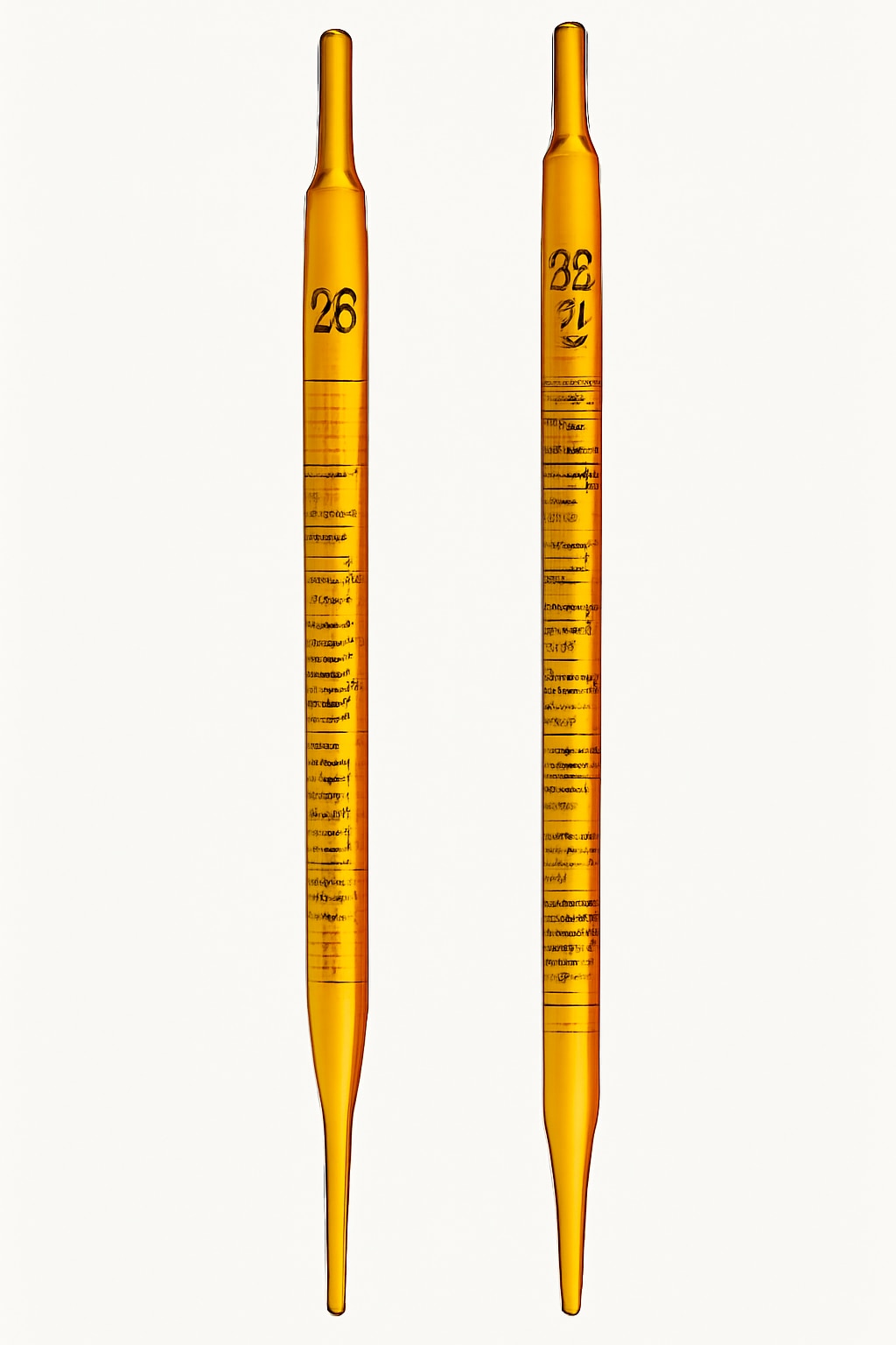 Graduated Pipettes (Amber Color) in 20 ml and 25 ml capacities are precision laboratory tools used to measure and transfer liquid volumes accurately within those ranges. The amber coloring offers protection against light, preventing degradation of light-sensitive substances during handling. They are marked with graduation lines for precise volume measurement and are commonly found in chemistry, biology, and pharmaceutical labs for experiments requiring controlled liquid dispensing.