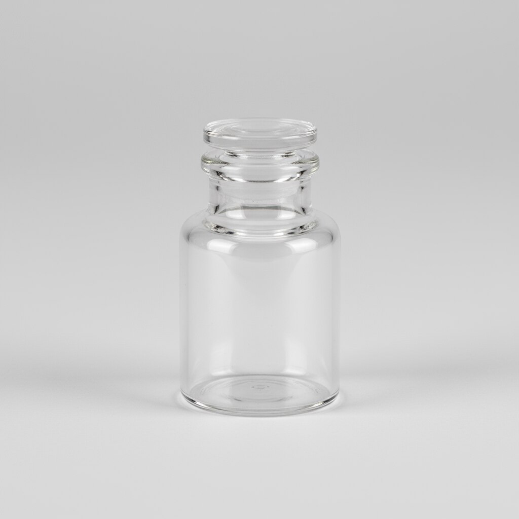 A squat form weighing bottle (40x30 mm, 20 ml) is a small, shallow borosilicate glass container ideal for weighing and handling small quantities of powders or solid samples in laboratory settings