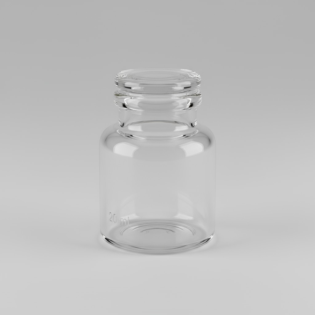 The weighing bottle, squat form, 50x25 mm with 20 ml capacity, is a transparent borosilicate glass laboratory bottle designed for precise weighing and handling of small quantities of chemicals. Its squat, low-form shape allows easy placement on balances and prevents spillage during weighing. The bottle is made from chemical-resistant borosilicate glass (Boro 3.3), ensuring durability and the ability to handle corrosive reagents safely. It typically comes with a glass cap to keep contents uncontaminated and secure. This weighing bottle is widely used in labs for gravimetric analysis and accurate reagent measurement