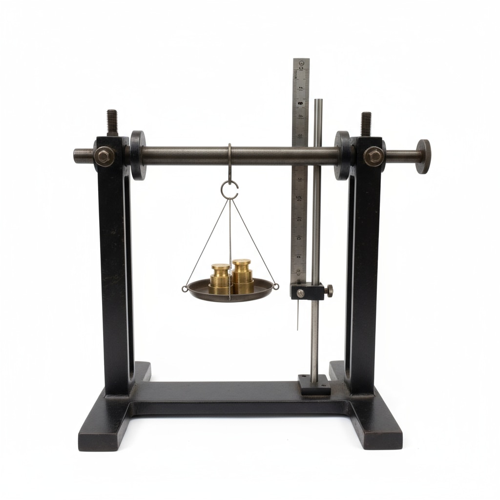 The Young Modules Apparatus, standard size with an iron rod, is a laboratory instrument designed to measure the Young's modulus of iron. It consists of an iron rod securely mounted on a frame, equipped with a scale and weights to apply varied tensile forces. The device measures the elongation of the iron rod under different loads, enabling calculation of the material's stiffness and elasticity. The apparatus is precise and durable, ideal for educational and research applications in material science to study stress-strain relationships of iron
